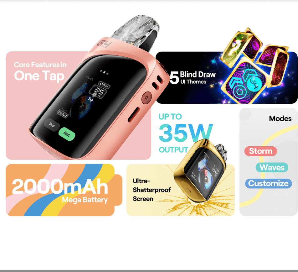 Designed for the vaper who wants style, customization, and top-tier performance, the G4 Pro KOKO features a 200mAh built-in rechargeable battery, adjustable up to 35W, and charges fast via USB-C – delivering solid performance in a compact, stylish form.